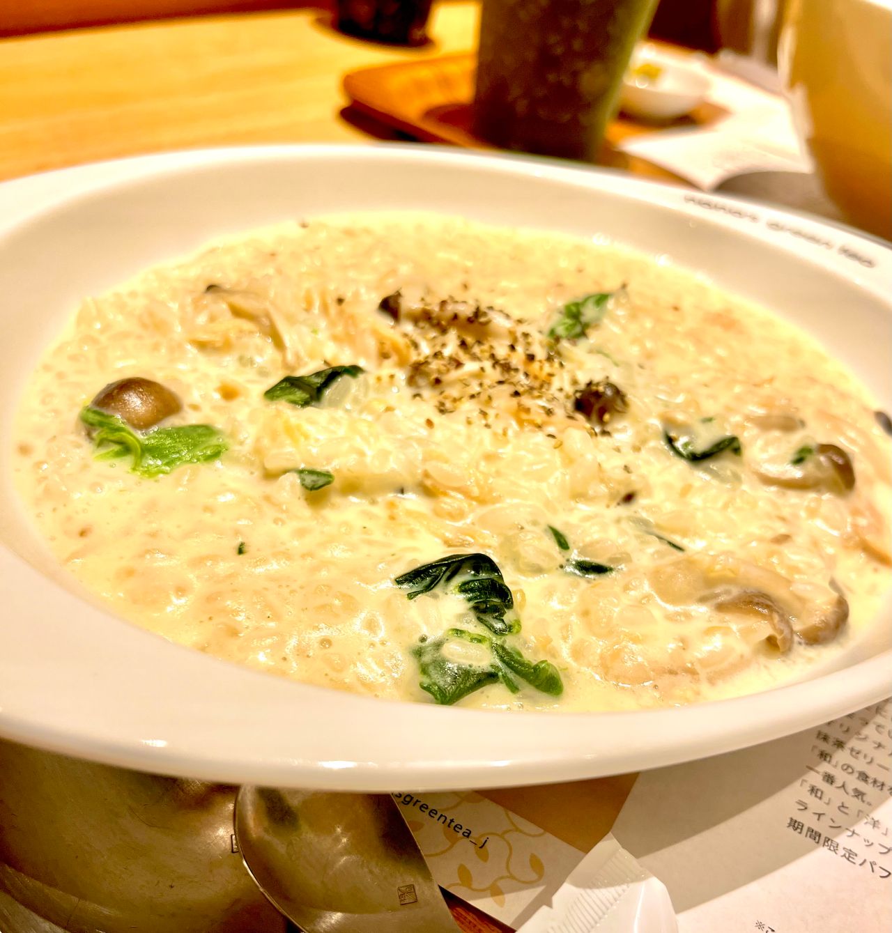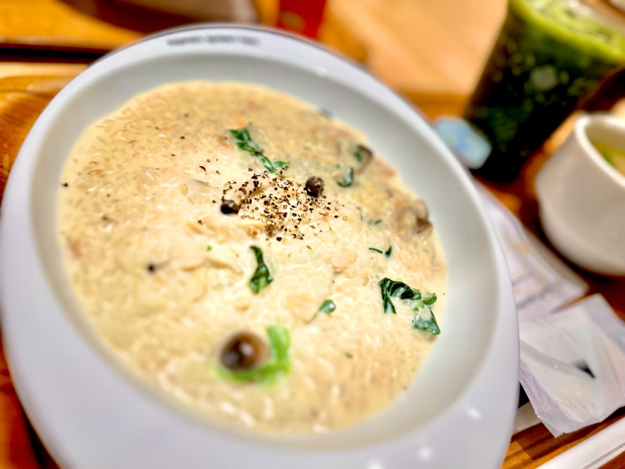 【終売間近メニューのご紹介②】優しい味わい、鮭とほうれん草の豆乳リゾット!