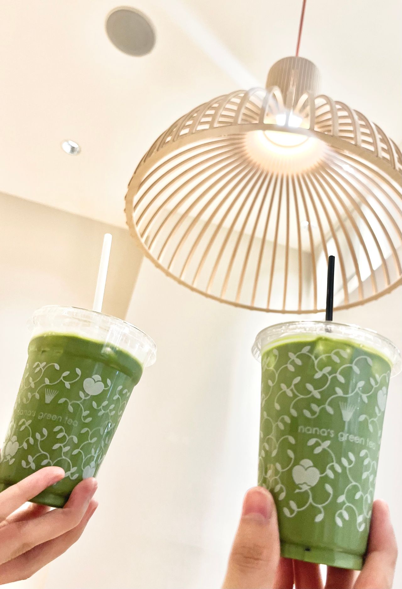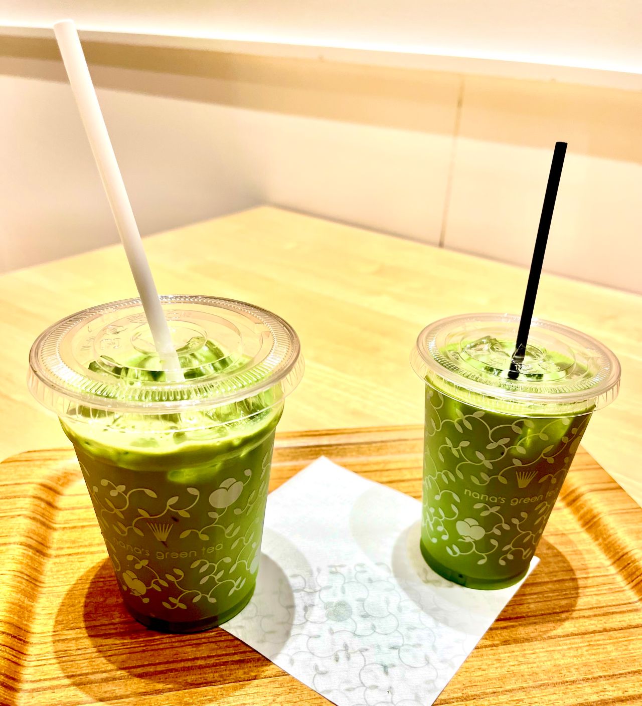 Mサイズの抹茶ラテとキッズサイズの抹茶ラテの大きさの違いをご覧ください!