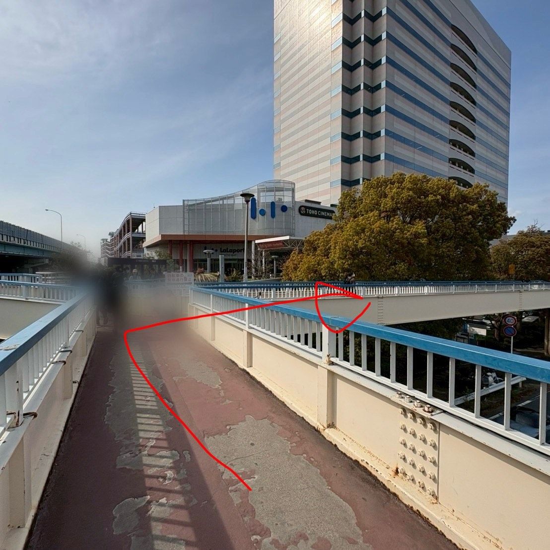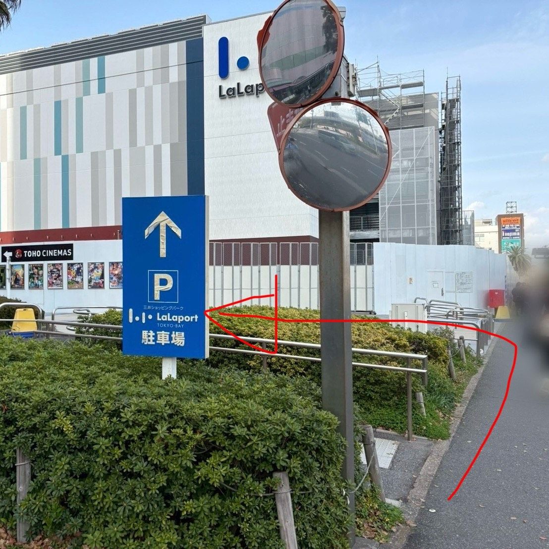 ⑥ららぽーとの建物が見えてくるので、建物を左手に見て右に曲がりましょう