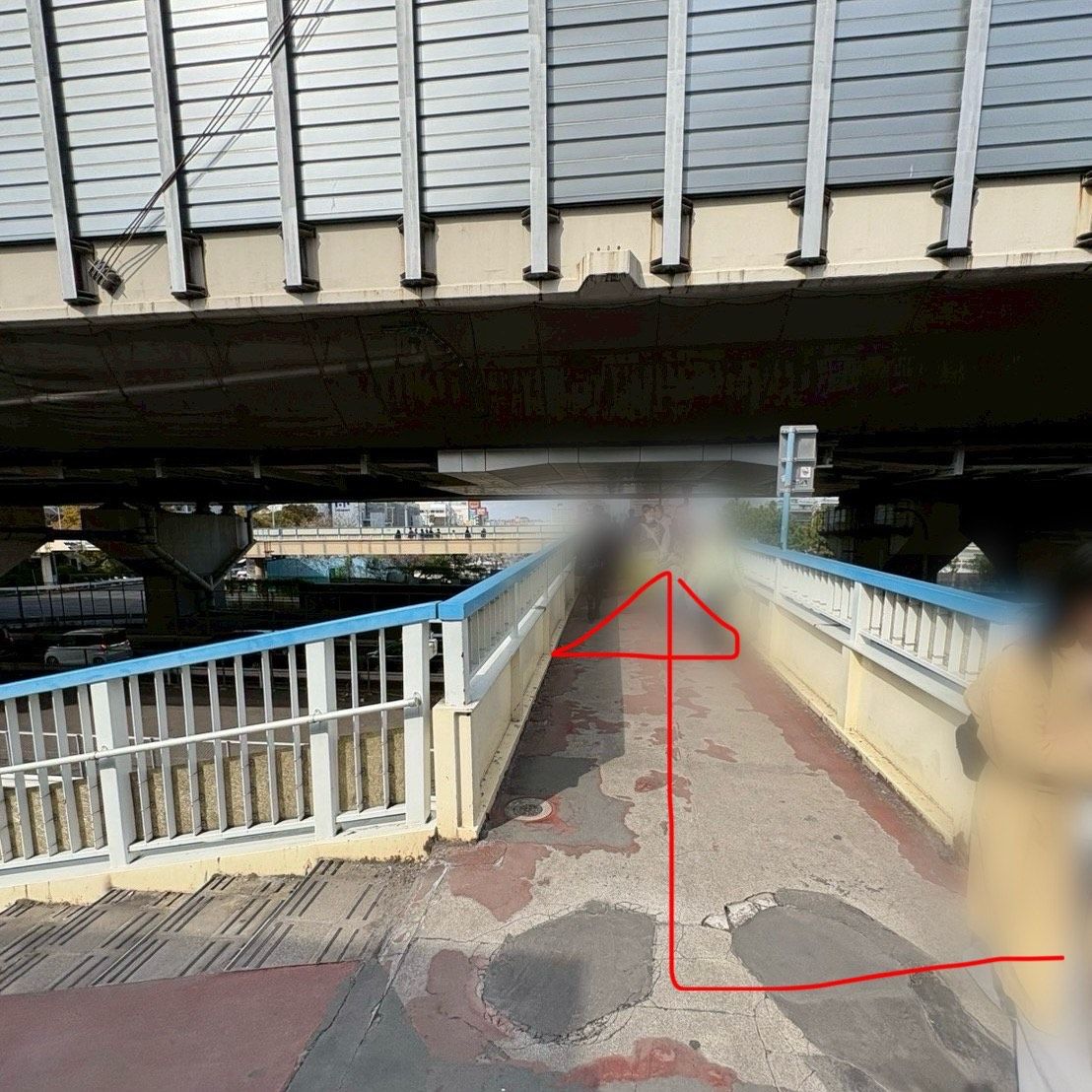 ⑦歩道橋を降りて、少し進むと上の写真の場所が