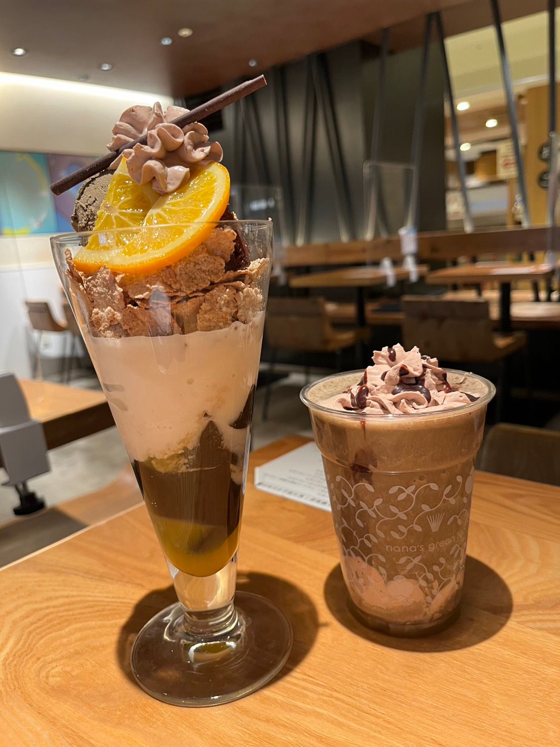 現在販売中の「オレンジショコラほうじ茶パフェ」「オレンジショコラほうじ茶フローズン」「抹茶ガレット」は14日までの販売です。