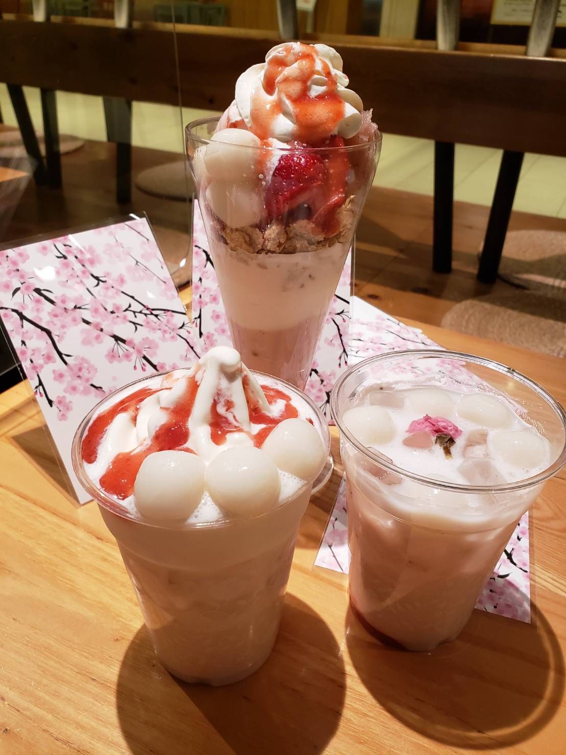 苺の甘酸っぱさと桜のほのかな香りが感じる限定スイーツ、ドリンクです。