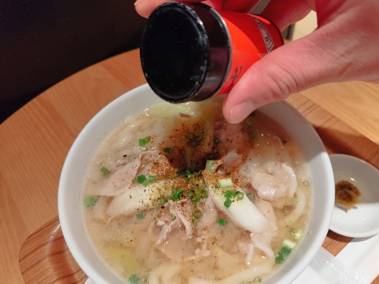 アクセントに七味、柚子胡椒で味の変化も楽しめます。