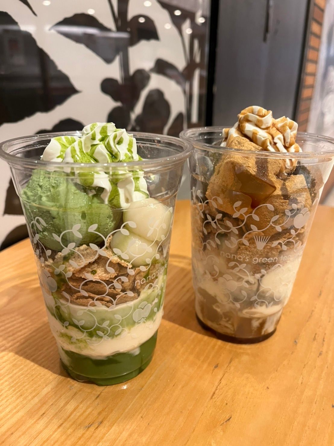 当店では抹茶やほうじ茶のパフェが大変人気です。