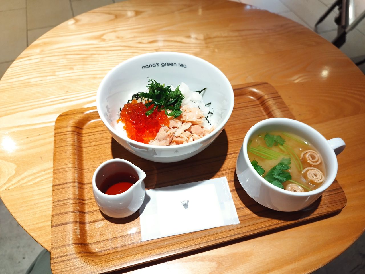 ↑いくらと鮭の親子どんぶり ¥1300 ランチセット ¥1530~