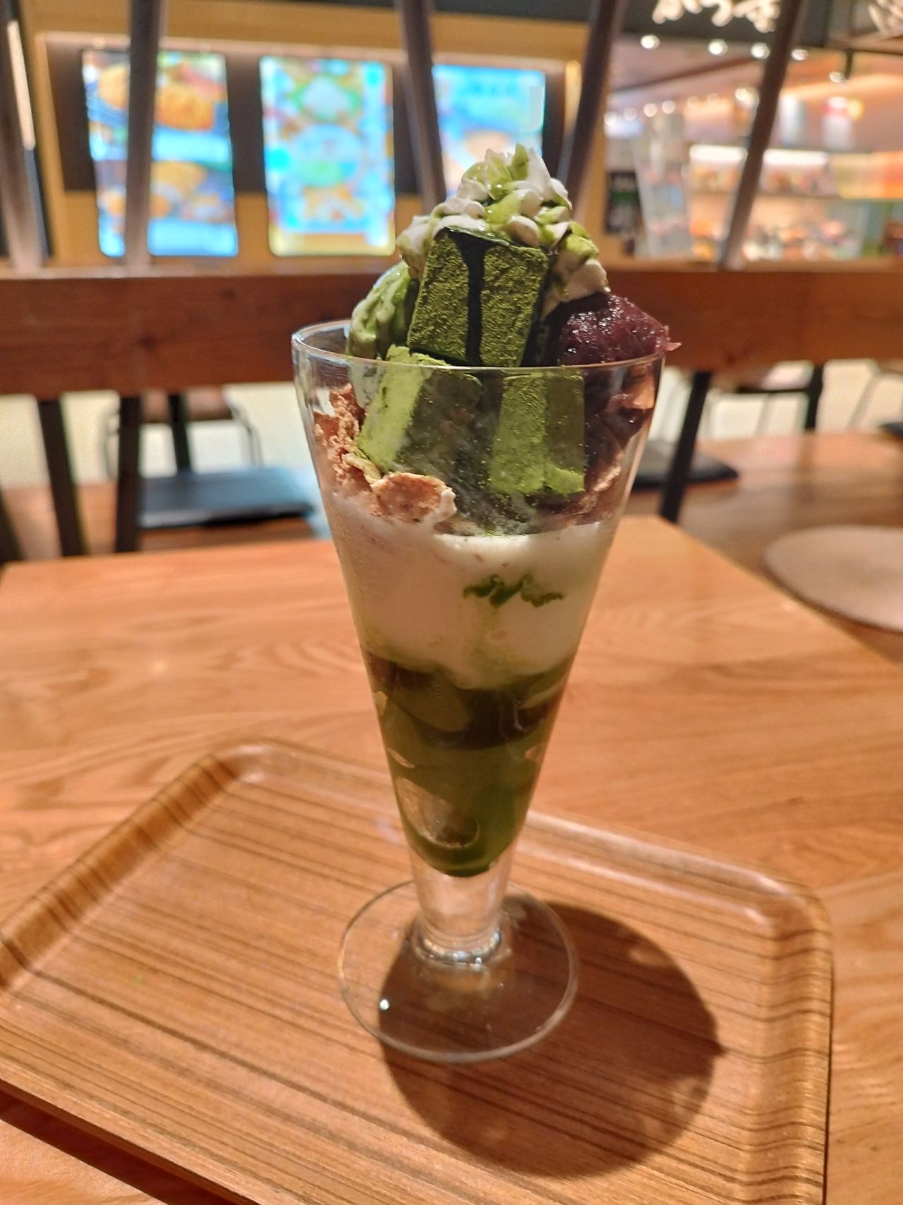 大人気の抹茶のパフェです。つるんとした抹茶ゼリーに濃厚な抹茶蜜を使用しています。口の中で溶ける抹茶生チョコレートが堪りません。締めパフェ、ご褒美パフェなどにいかがでしょうか。