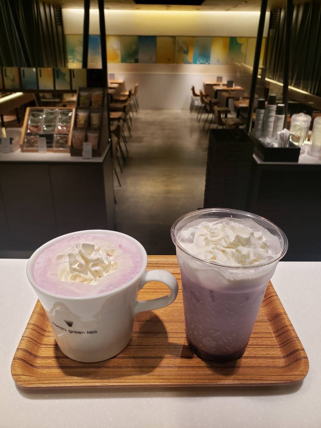 秋を感じる紫いもをドリンクにしました。底の濃厚な紫いもソースをかき混ぜながら召し上がっていただくと味の変化が楽しめます。