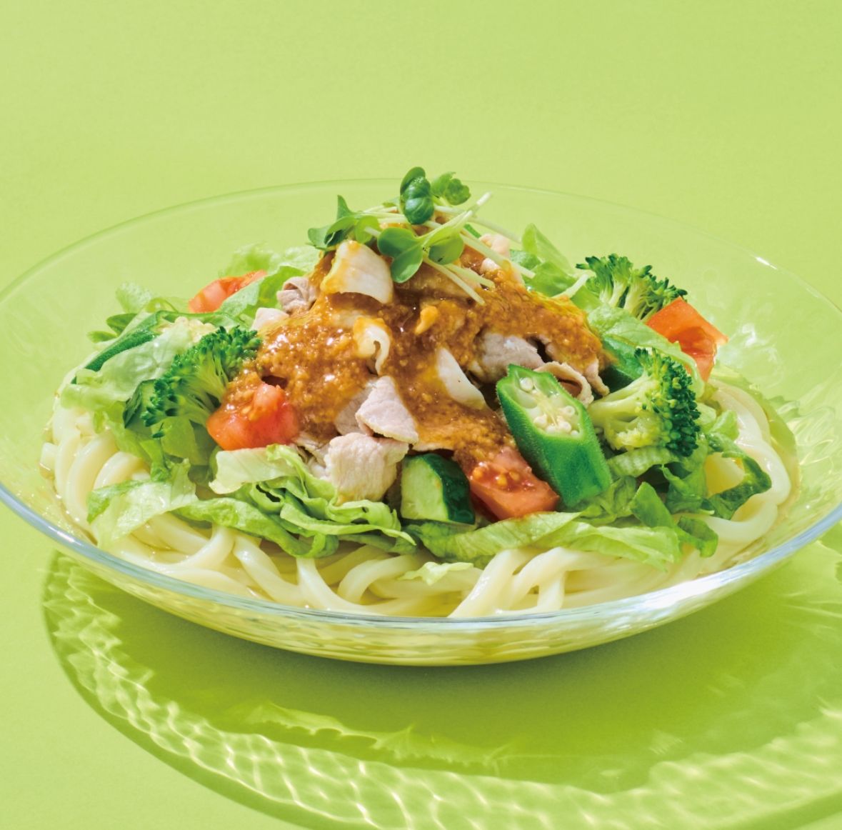 こちらは冷たいうどんで野菜もたっぷり乗っているので暑い夏でもぱくぱく食べれます!自家製だれがこれまた美味しいので、お箸が止まらないこと間違いなし!ぜひご賞味ください☆