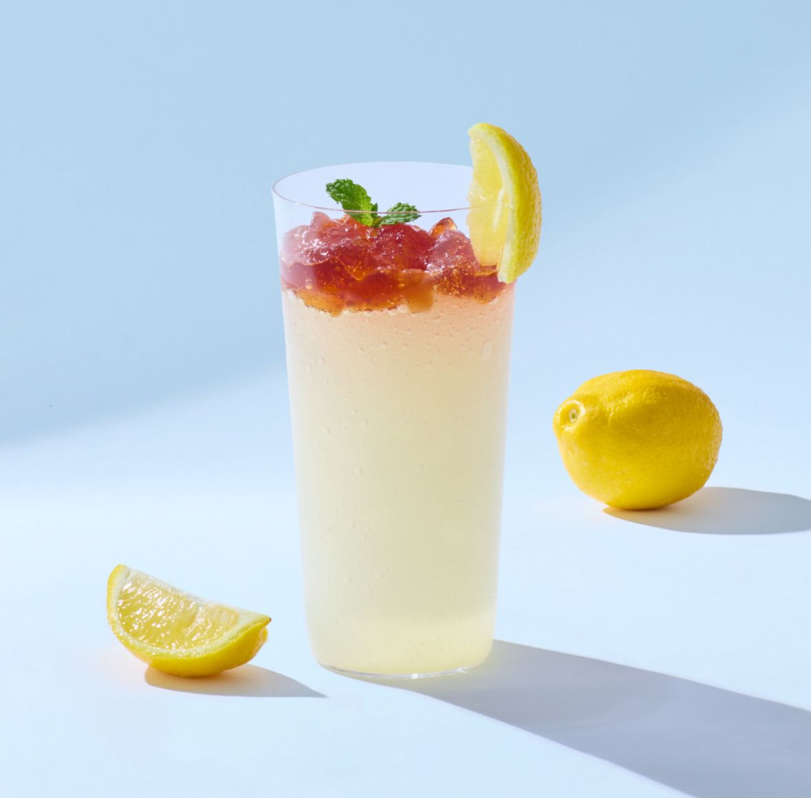 こちらの商品は氷を砕いて作っている為ひんやりしていてレモネードベースも入ってるためしっかりレモンを感じられる商品です!お好みでレモンを絞って飲むことでよりレモン感をアップできます!また紅茶ゼリーのぷるぷる感もあって食感も楽しめます!