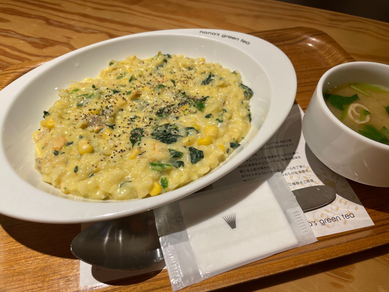 毎年好評をいただいているナナズグリーンティーのリゾットに今年はコーンが登場しました。