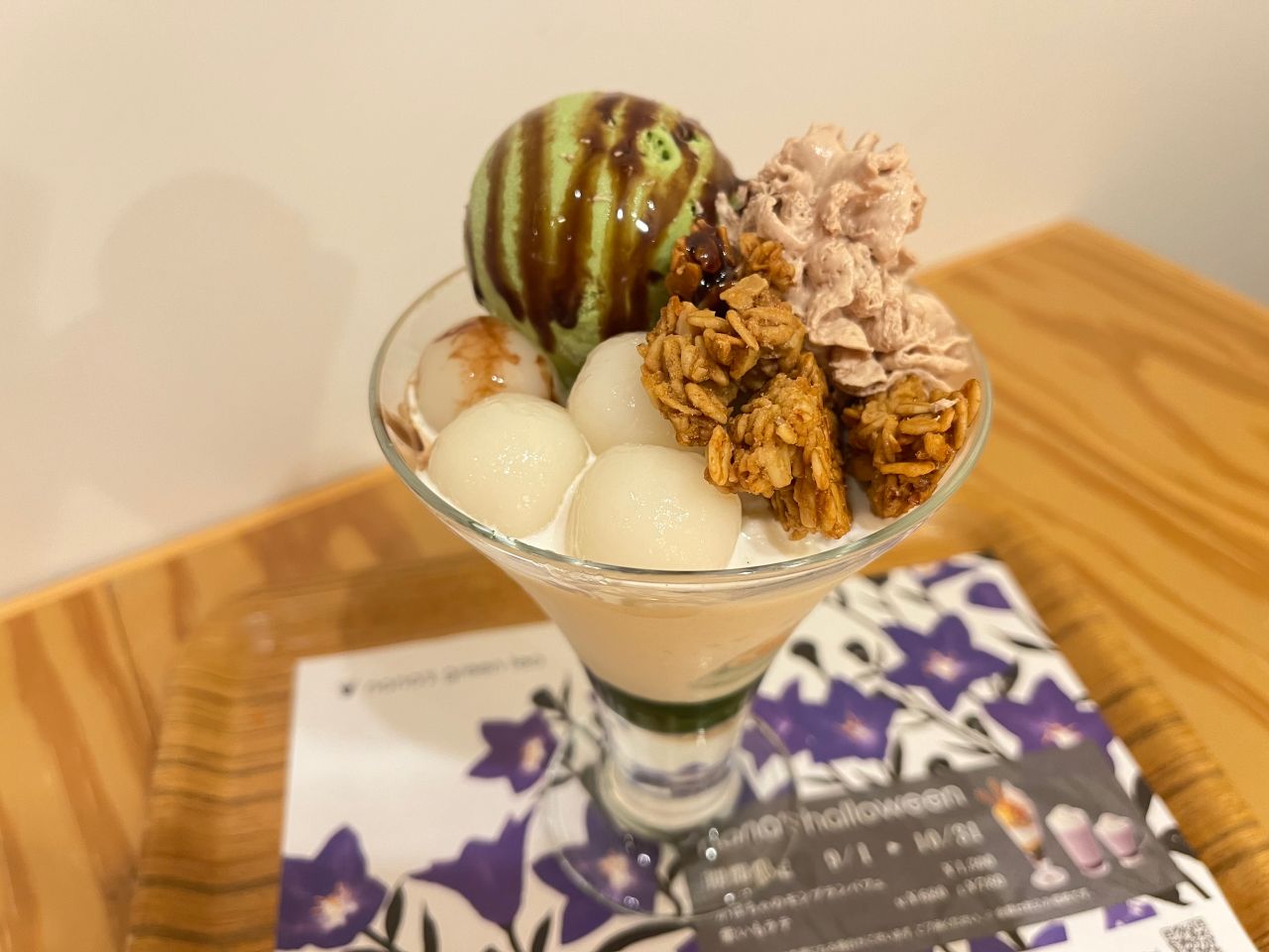 大人気の定番メニュー「抹茶白玉パフェ」は1000円と少しお高めなので、+450円でパフェが食べられるのはお財布にも優しいですよね…!