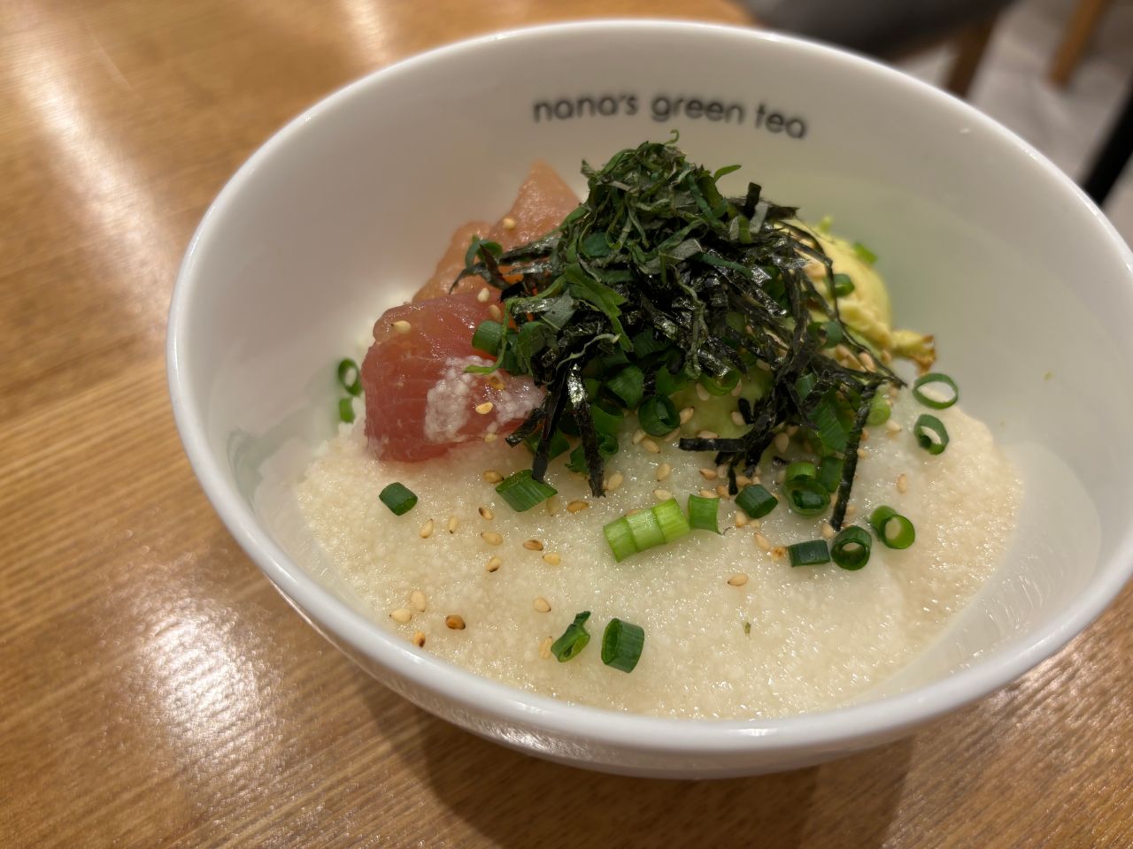 天然のもちびんちょう鮪に、アボカドと、とろろ、たっぷりの薬味をトッピングした