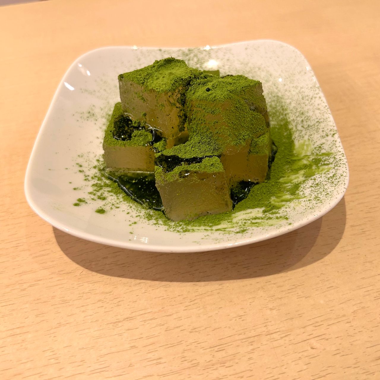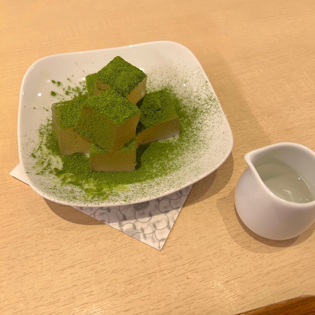 この抹茶わらび餅には、抹茶と白蜜がかかっています。