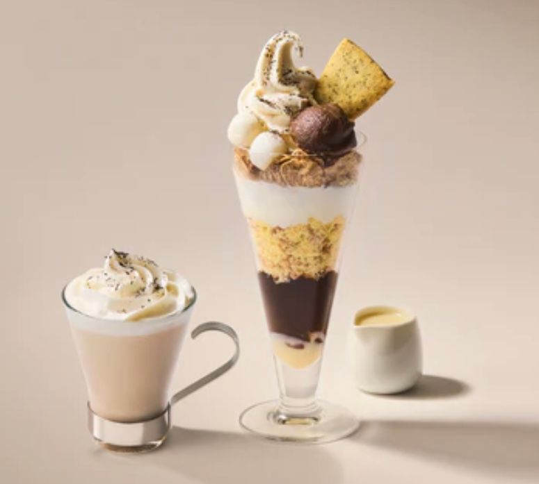 ホワイトチョコレートと黒ウーロン茶を合わせたパフェ。