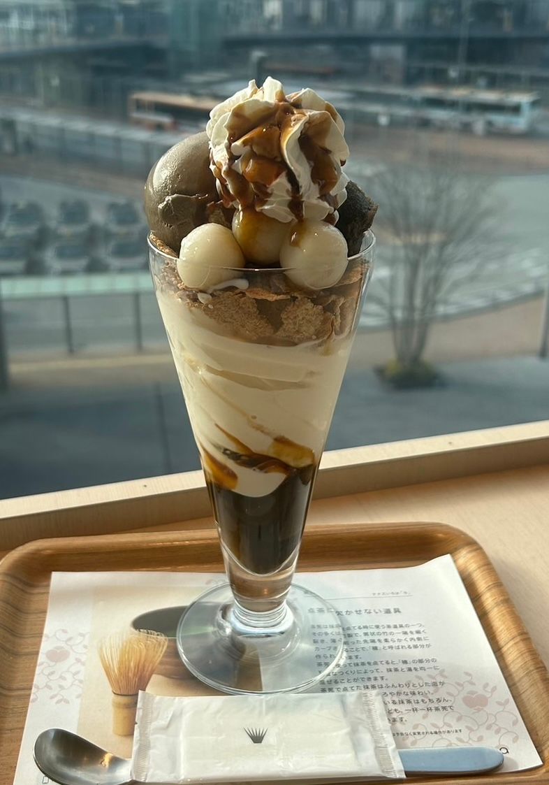 大きなパフェは最後までほうじ茶を存分に楽しめる