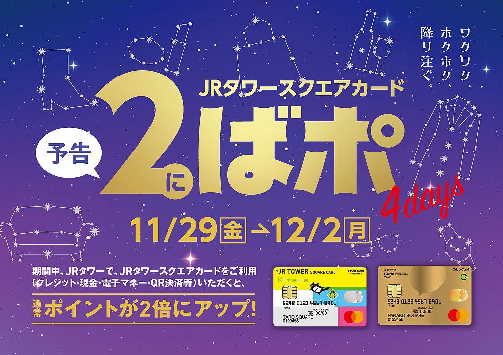 【予告】JRタワースクエアカード 2ばポ 4days開催!