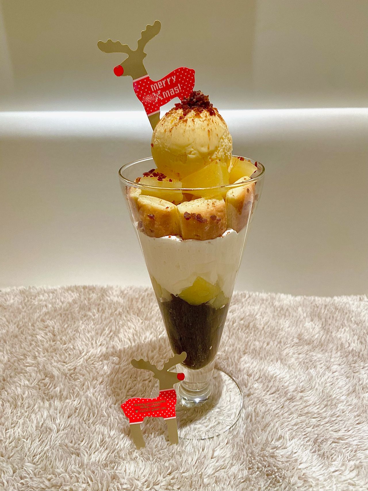 下にはほうじ茶ゼリーでサッパリ、上にはシナモンの香りで