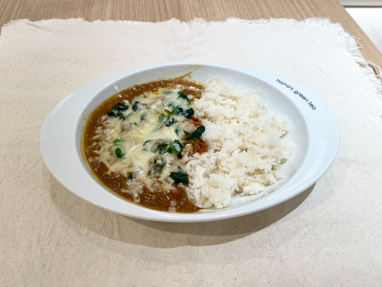 野菜が入ったカレーにたっぷりのほうれん草と、