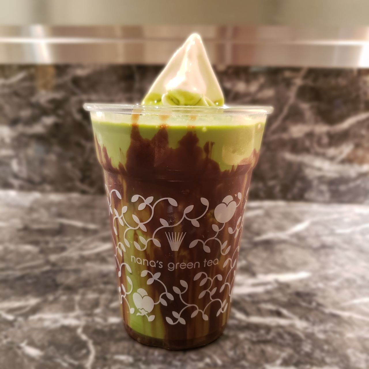 飲んだ瞬間に香る抹茶が特徴の微糖ラテの上に