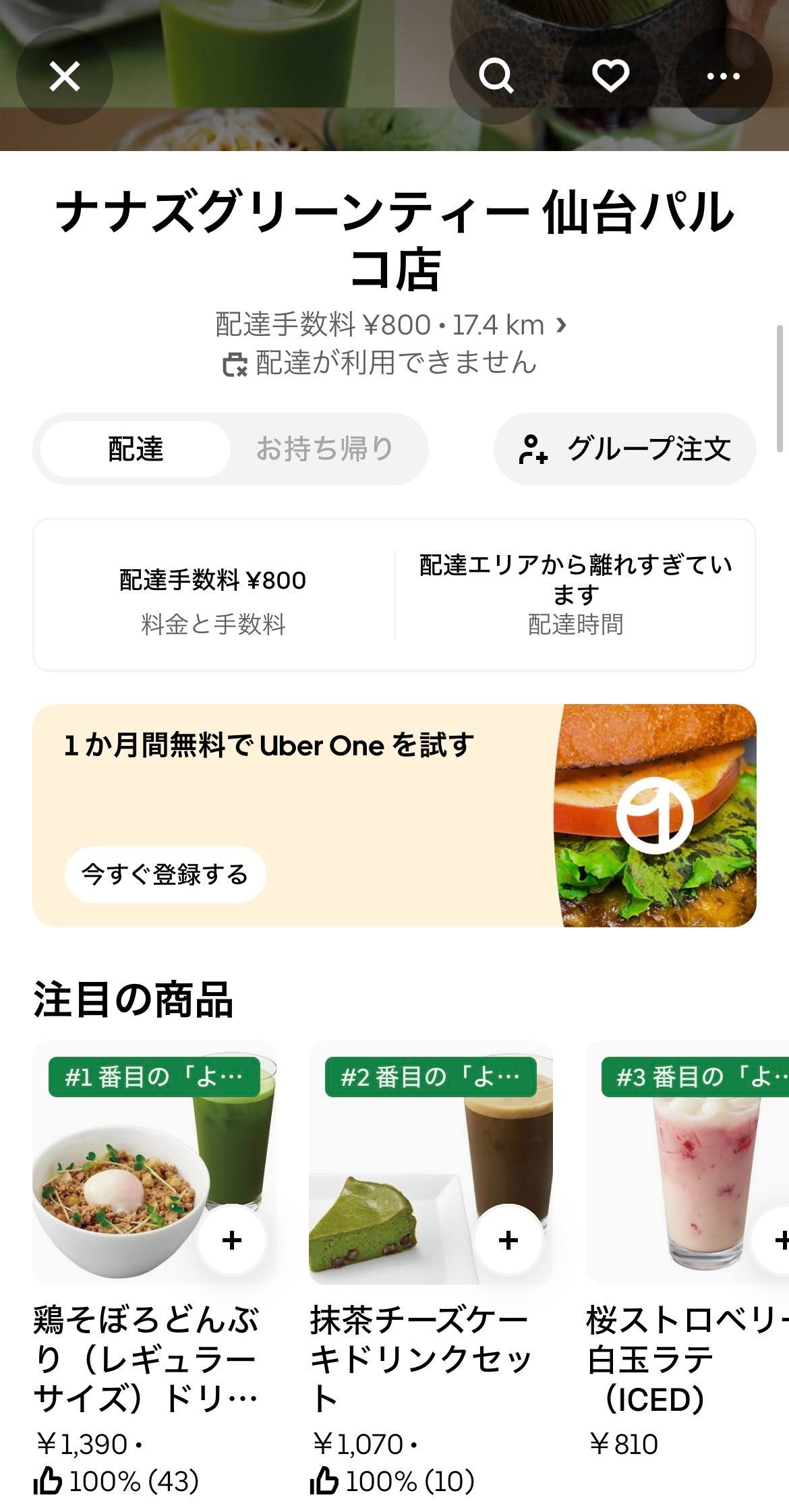 ナナズグリーンティーは元々テイクアウトOKのお店でしたが、遠くからでもナナズグリーンティーをお楽しみいただけるようにUberEATSをはじめました!