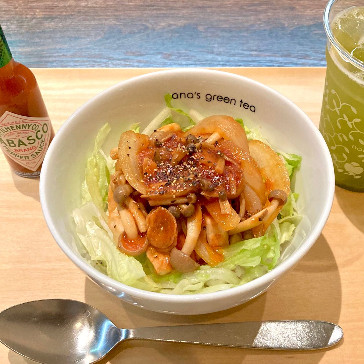 カジキ鮪、玉ねぎ、しめじをフライドガーリックで炒め、酸味と甘みをプラスしたオリジナルのトマトソースを絡めました。