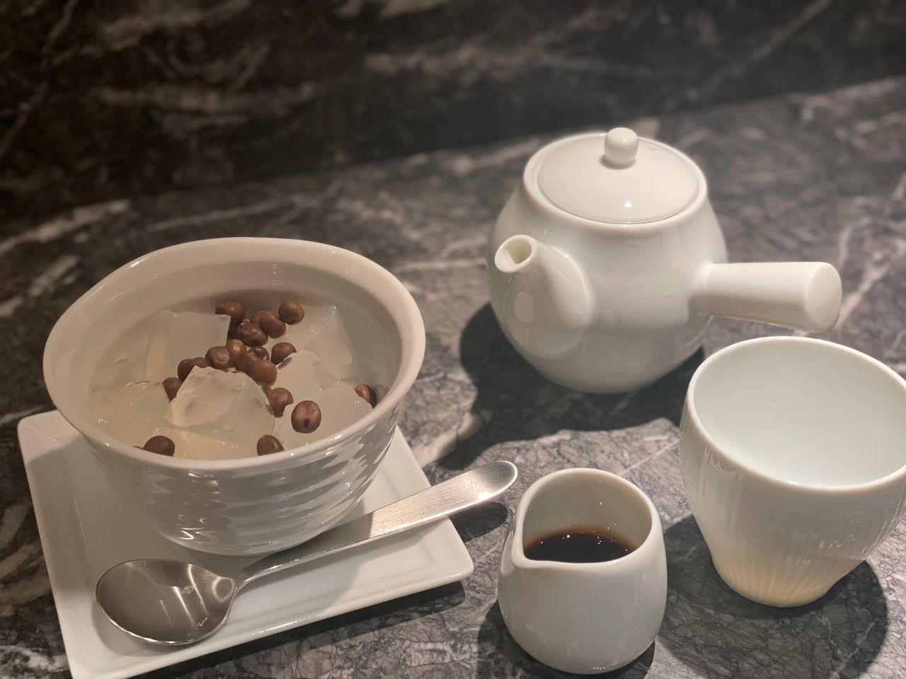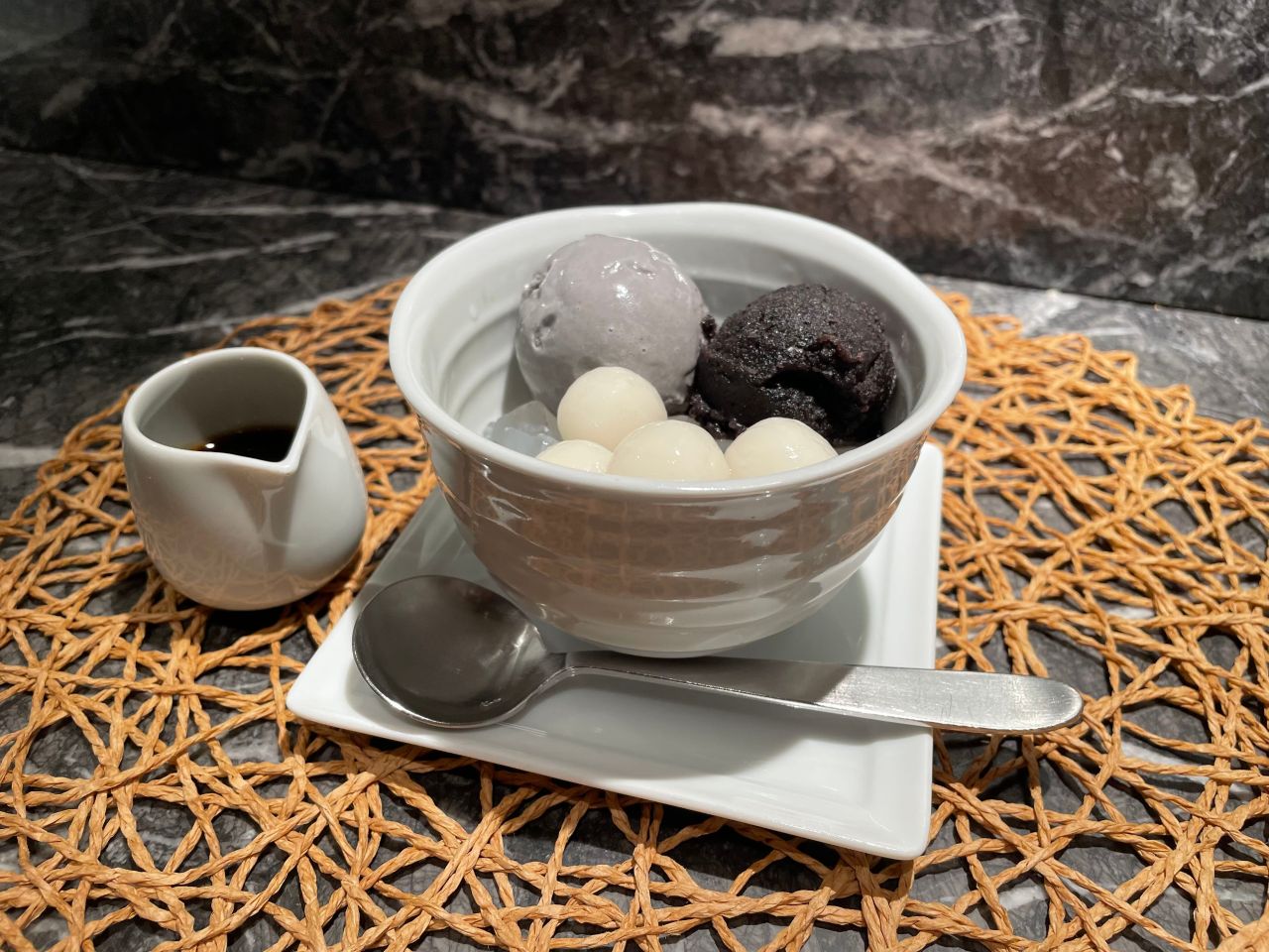 ランチセットのあんみつは、シンプル豆かんと白玉となりますので、お好みのアイスクリームをトッピングするのがおすすめ。