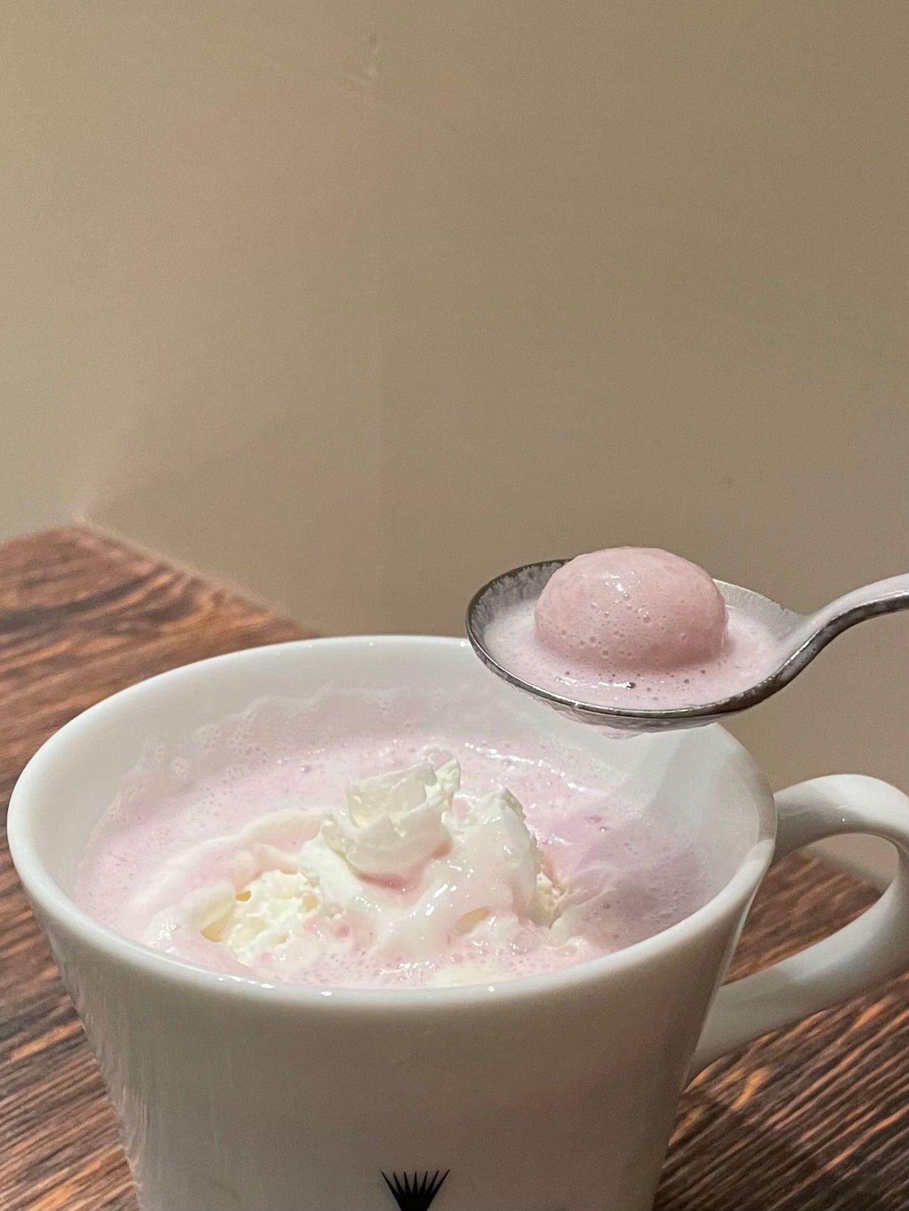 こっくり紫芋ラテの中には、さらにこっくりした紫芋のソースが。