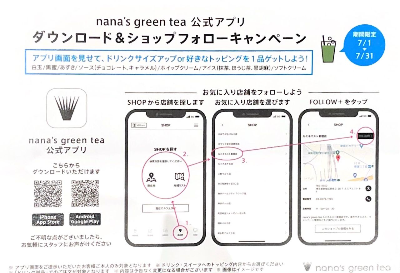 7月1日から公式アプリをダウンロード&ショップフォローで、お好きなトッピングをプレゼントキャンペーンが始まります!