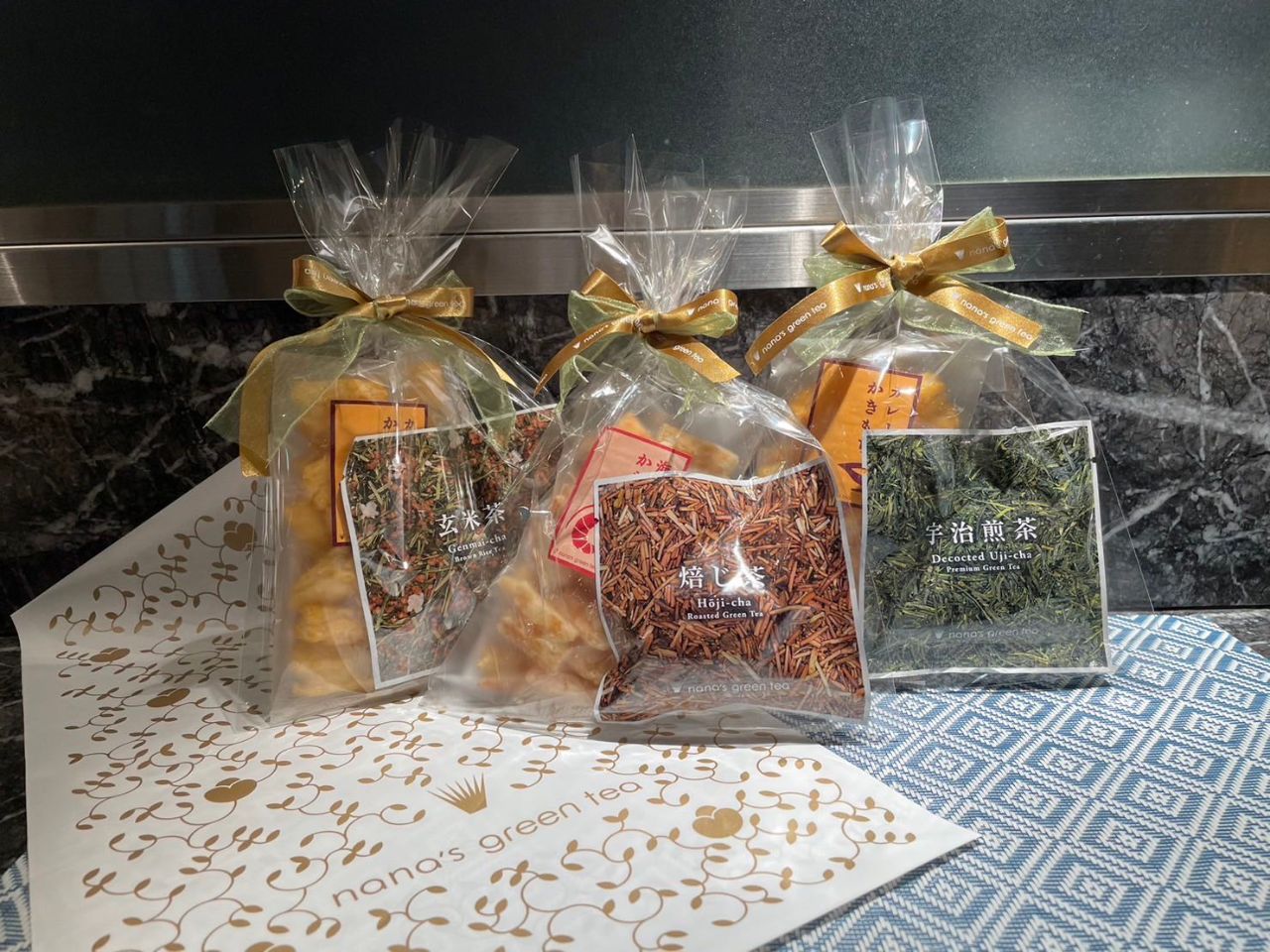 宇治煎茶、ほうじ茶、玄米茶の3種類のお茶をご準備しております。お土産にもぴったりです!