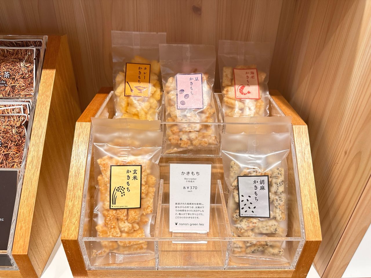 ナナズグリーンティーのかきもちは、それぞれお米の風味を生かした味付けとなっております!