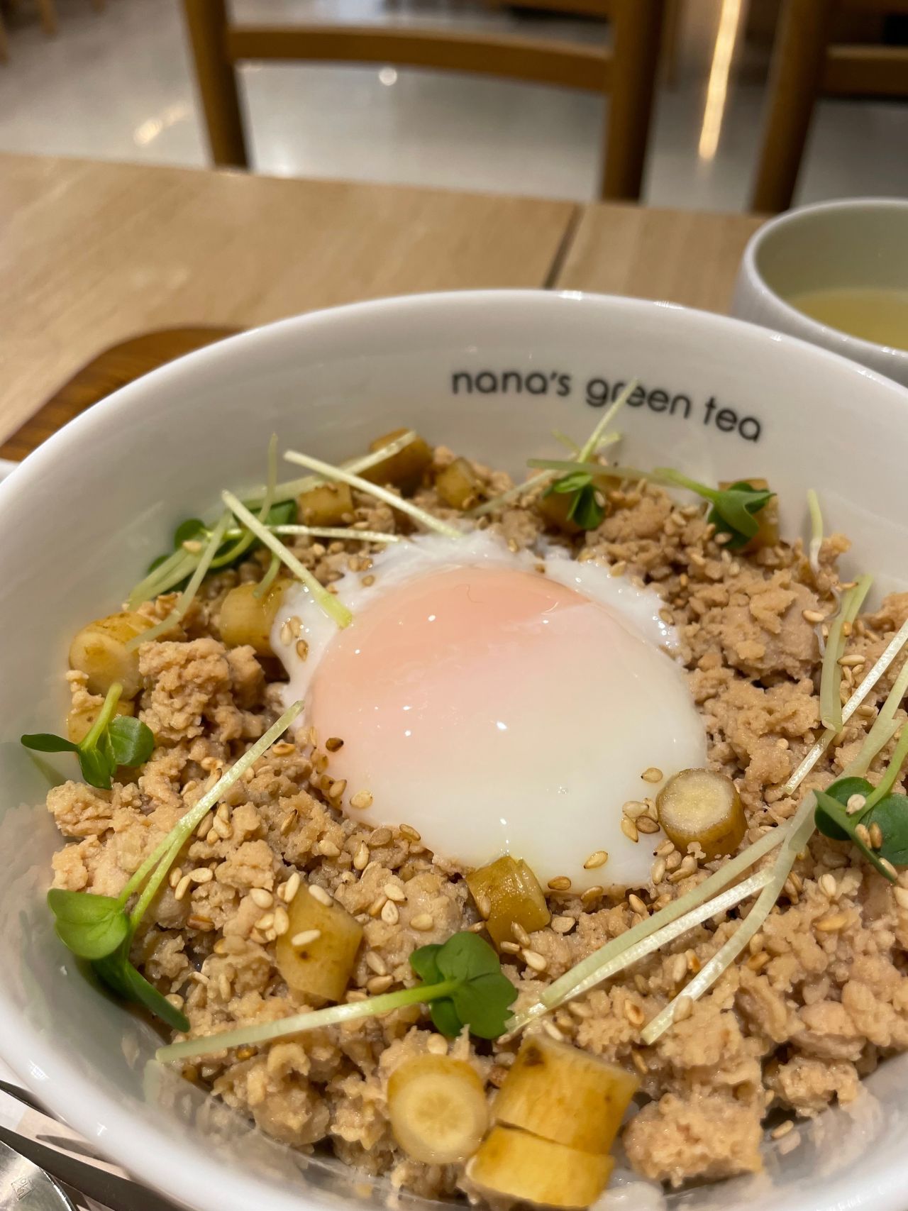 今日はフードのメニューの中から大人気の〈鶏そぼろ丼〉をご紹介させていただきます。