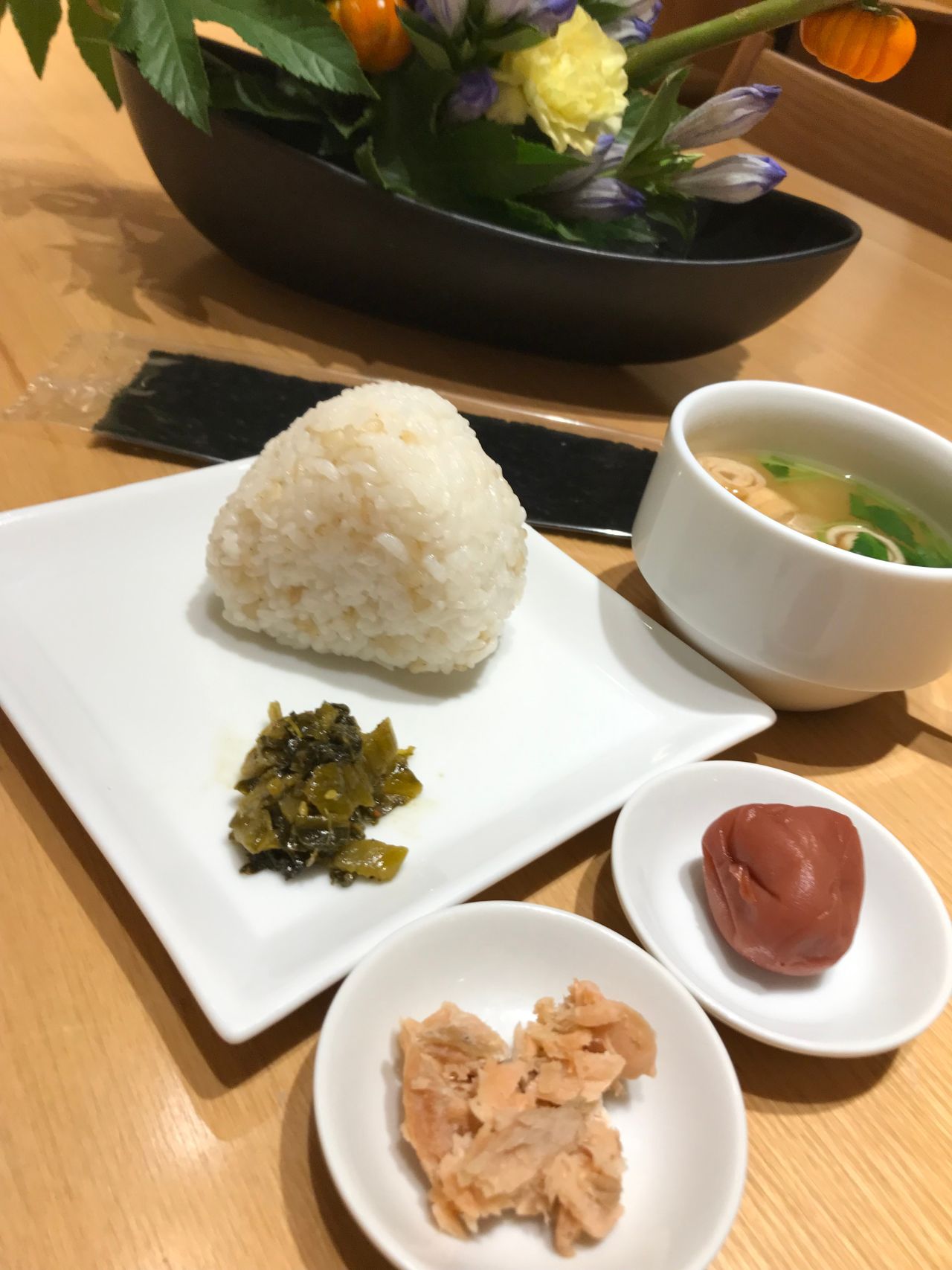 おにぎりの具材は鮭か梅を選べます!(メニューには載っていませんが実は塩も注文可能です…!)