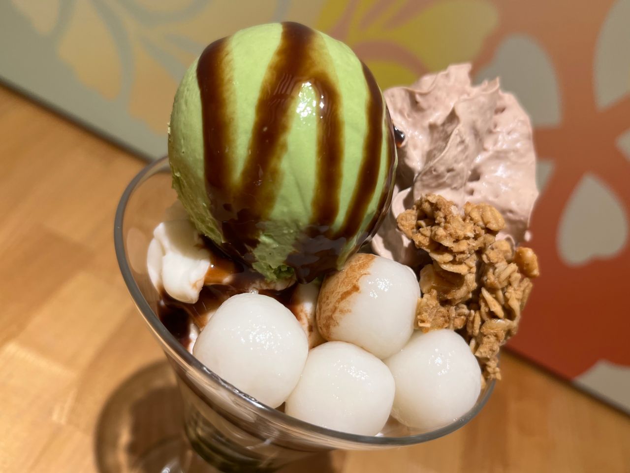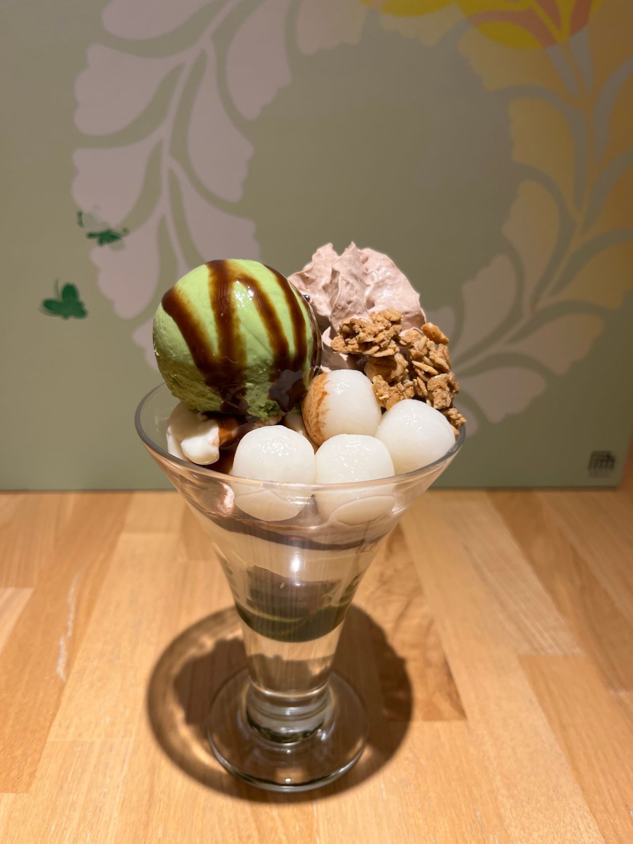 4月からは、新入生、抹茶と黒蜜のミニパフェが