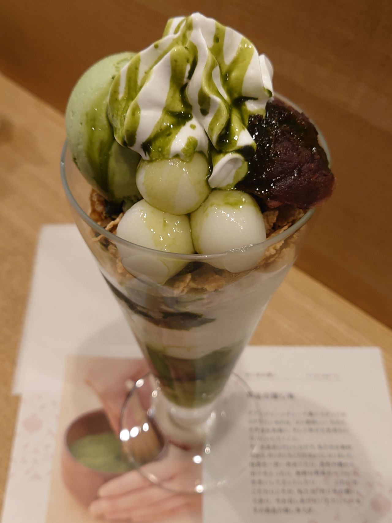 まずは自然豊かな色合いの抹茶白玉パフェからです!