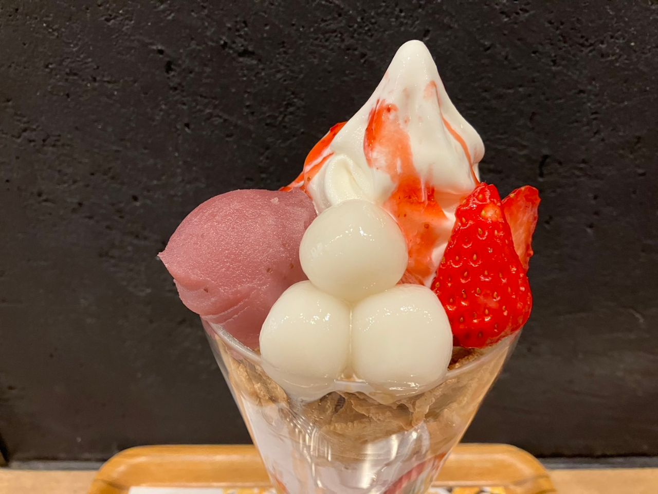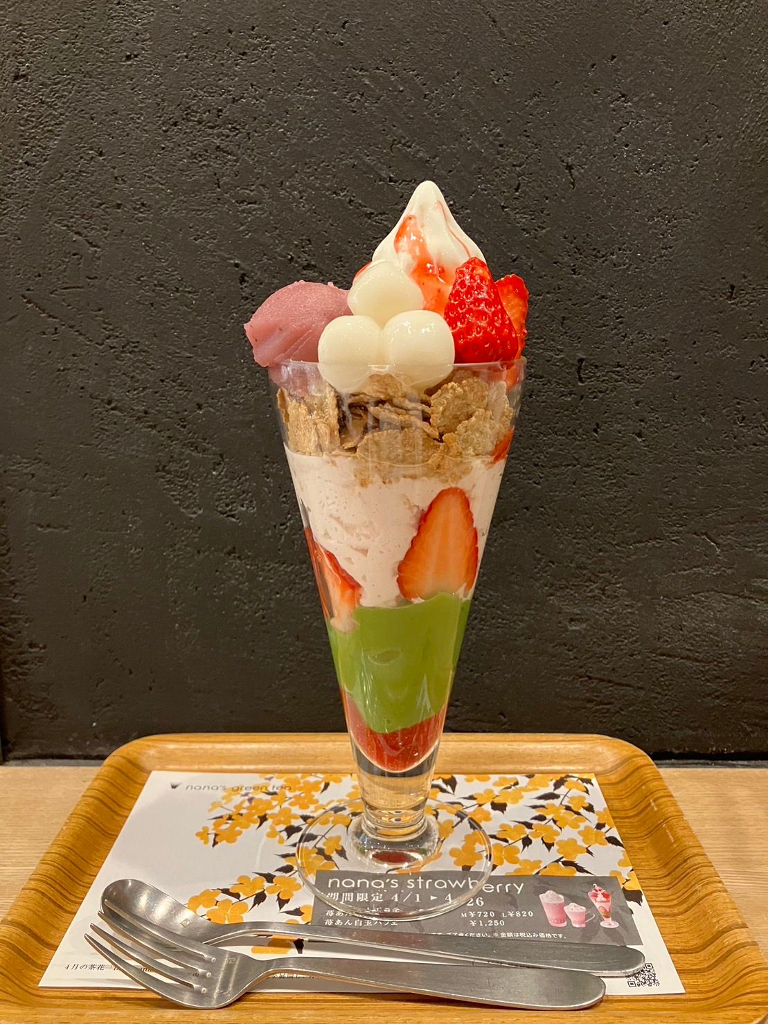 苺ソース、抹茶ゼリー、苺、苺クリーム
