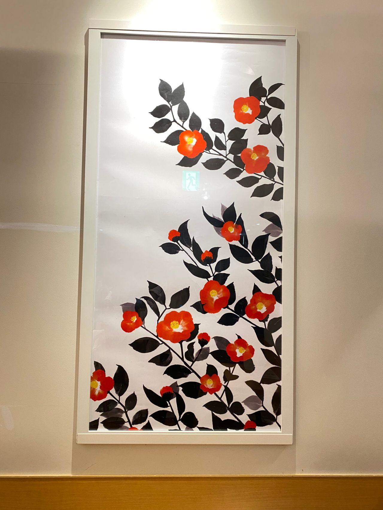 入り口には茶室にお花を生けるように、季節のお花を描いたポスターで、皆さまをお出迎えしています。