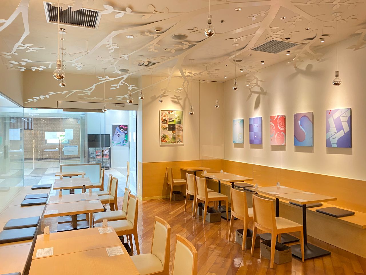 静岡パルコ店は、白色や木を基調とした落ち着いた空間で、天井にはお茶の葉をモチーフにしたデザインが施されています。