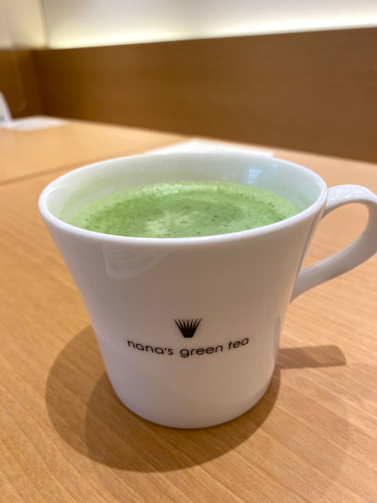 ナナズグリーンティーの抹茶ラテで、ホッとひといき、いかがですか♪