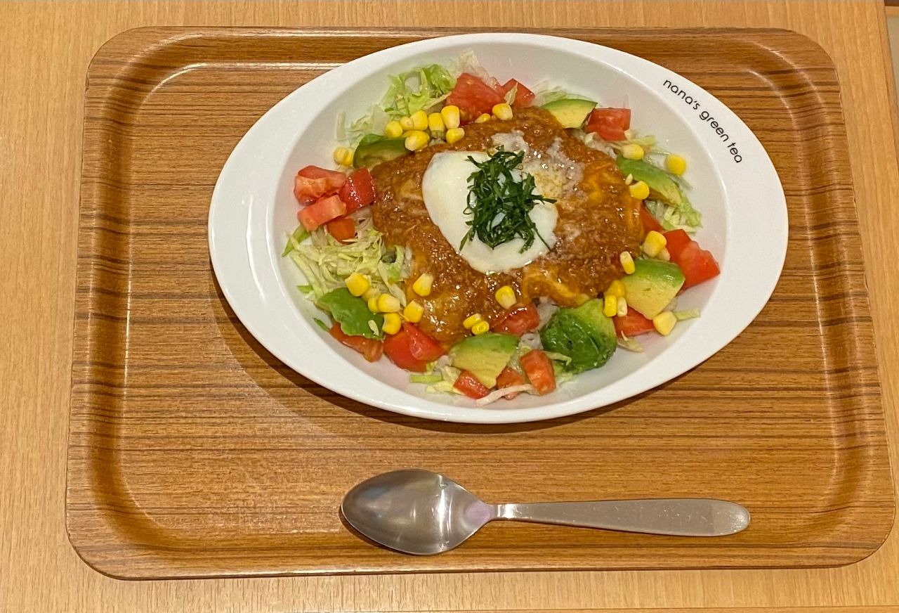もともと、タコライスは沖縄で誕生したものですが、それをナナズグリーンティー流に味噌や山椒を加えて、和風にアレンジしてお作りしています。