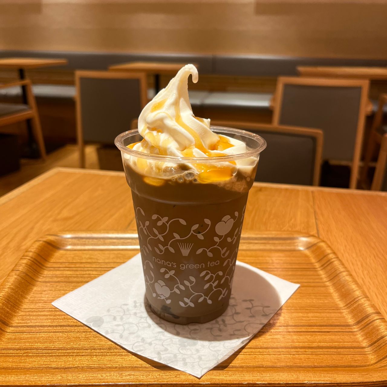 「ほうじ茶ラテ」&「ソフトクリーム」&「キャラメルソース」