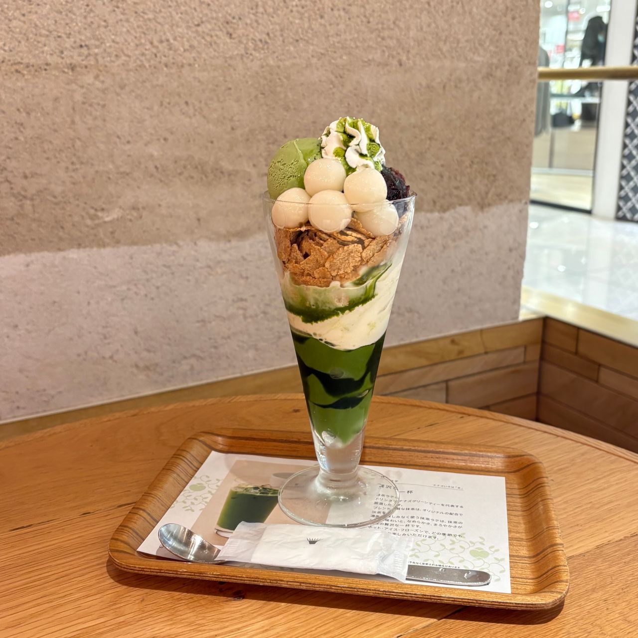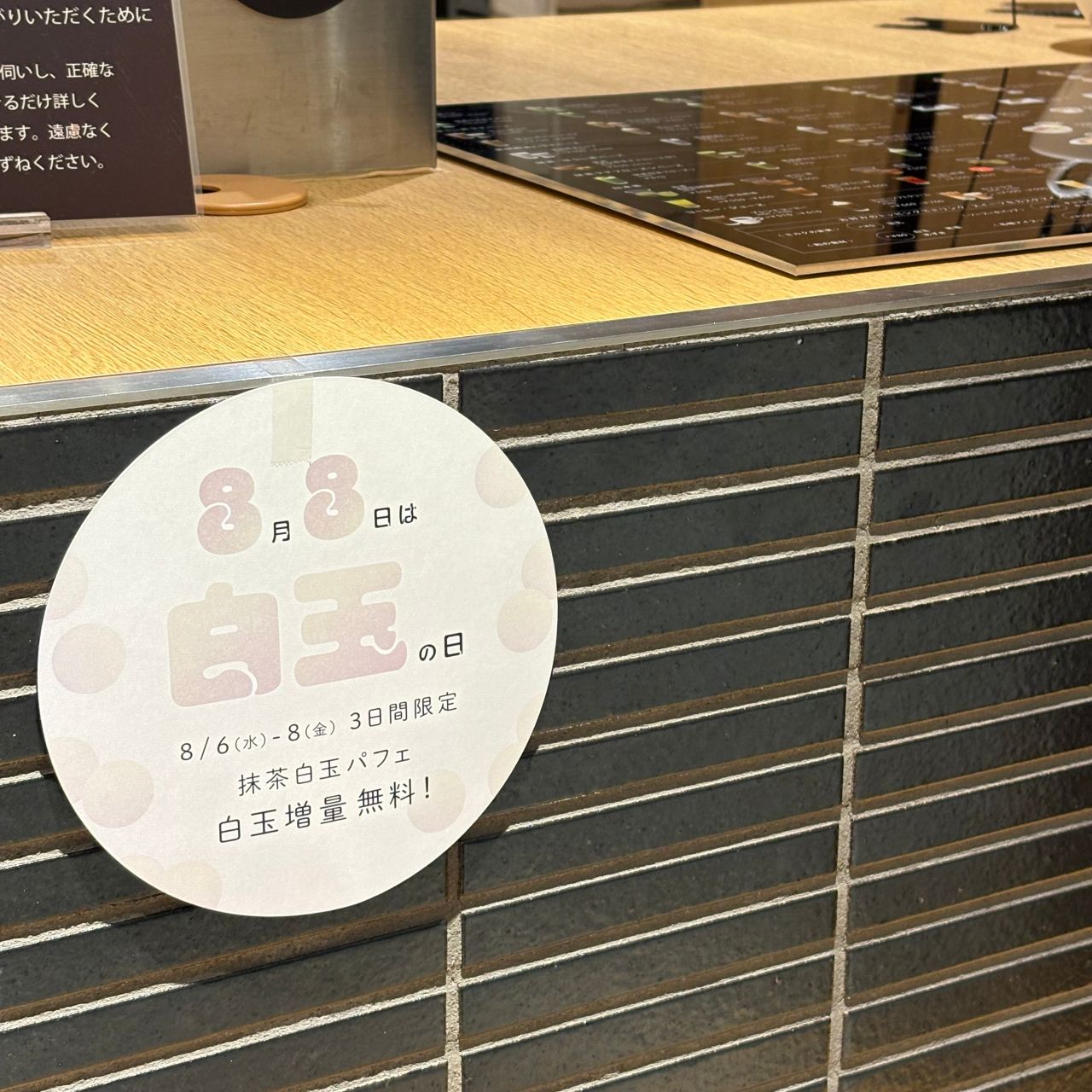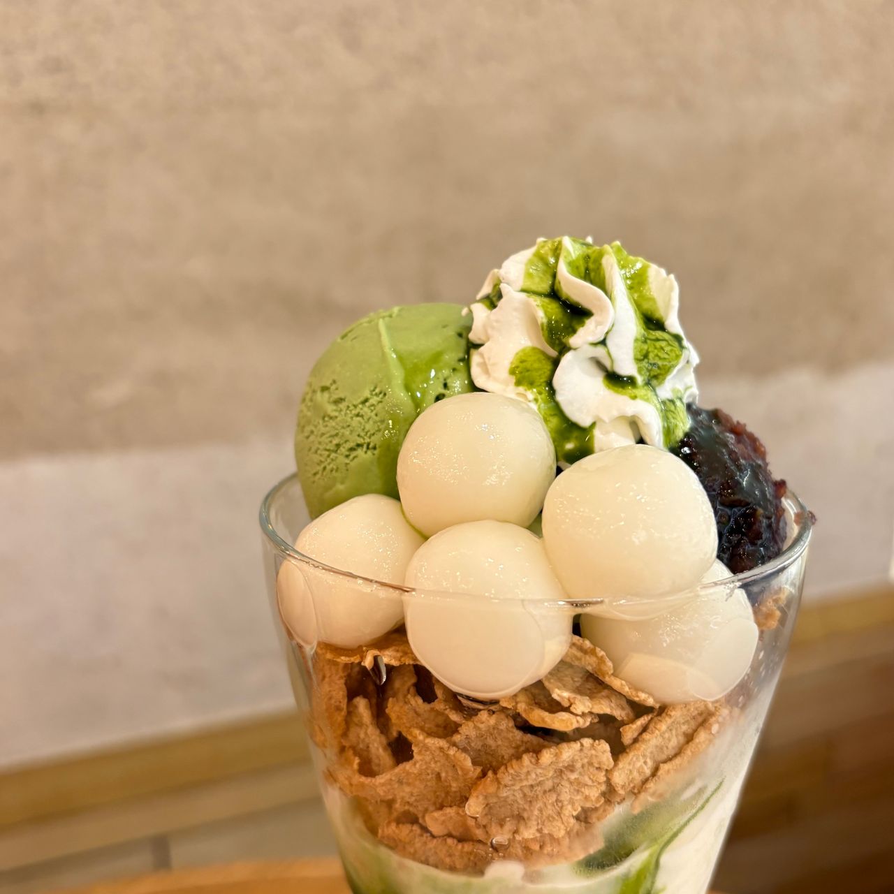 抹茶白玉パフェに無料で白玉3個増量することができます!