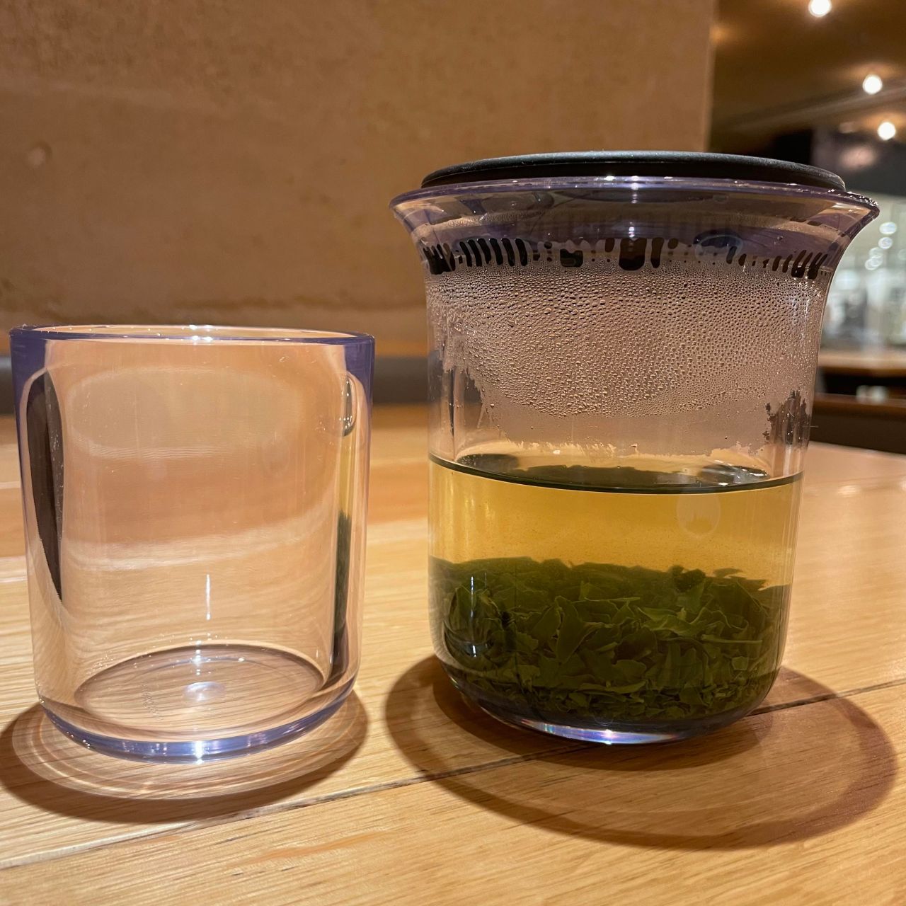 さて、上記の写真ではこれまでの白色の急須ではなく、透明の容器に新茶が入っていますね。