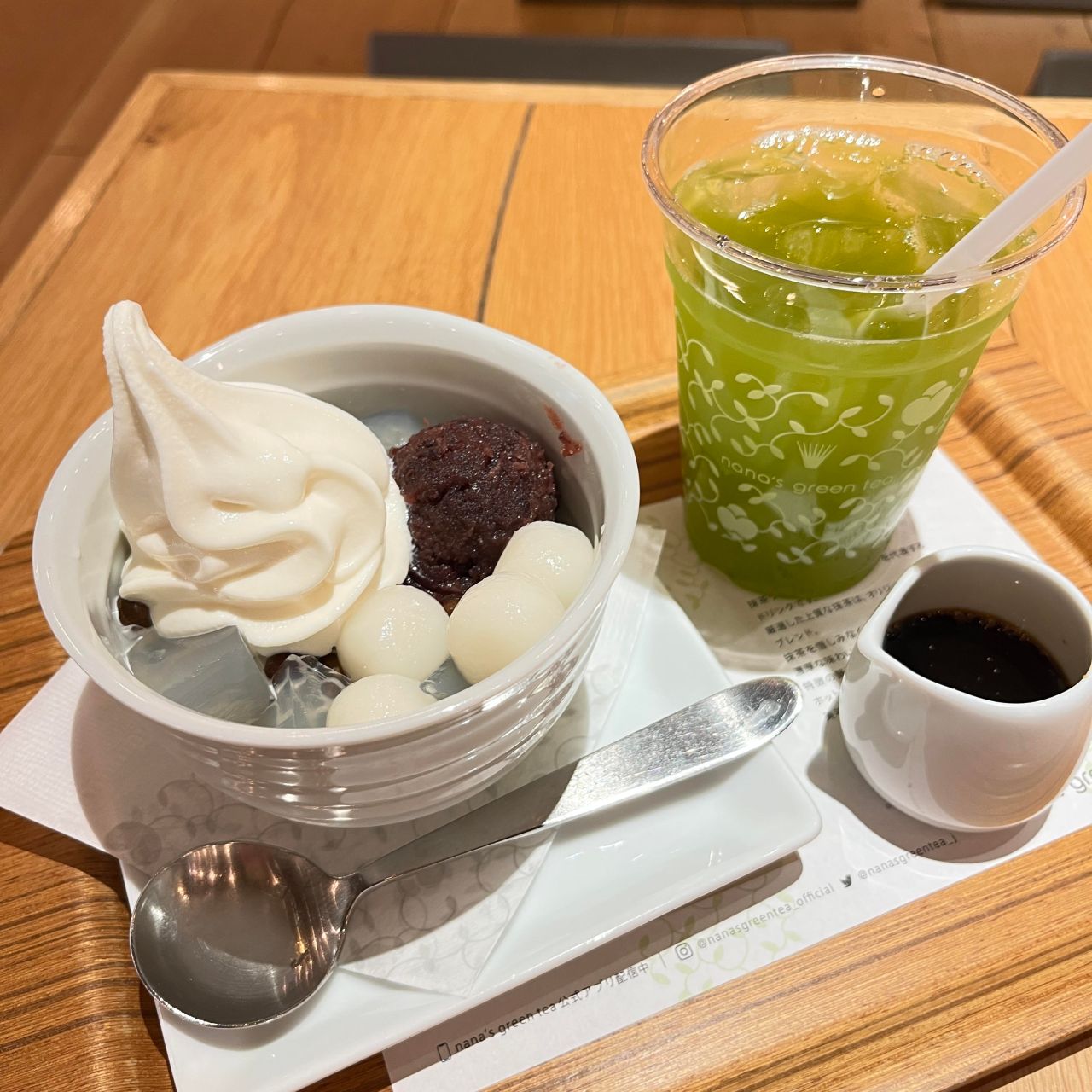 濃厚なミルクソフトクリーム、白玉、小倉あん、黒蜜、