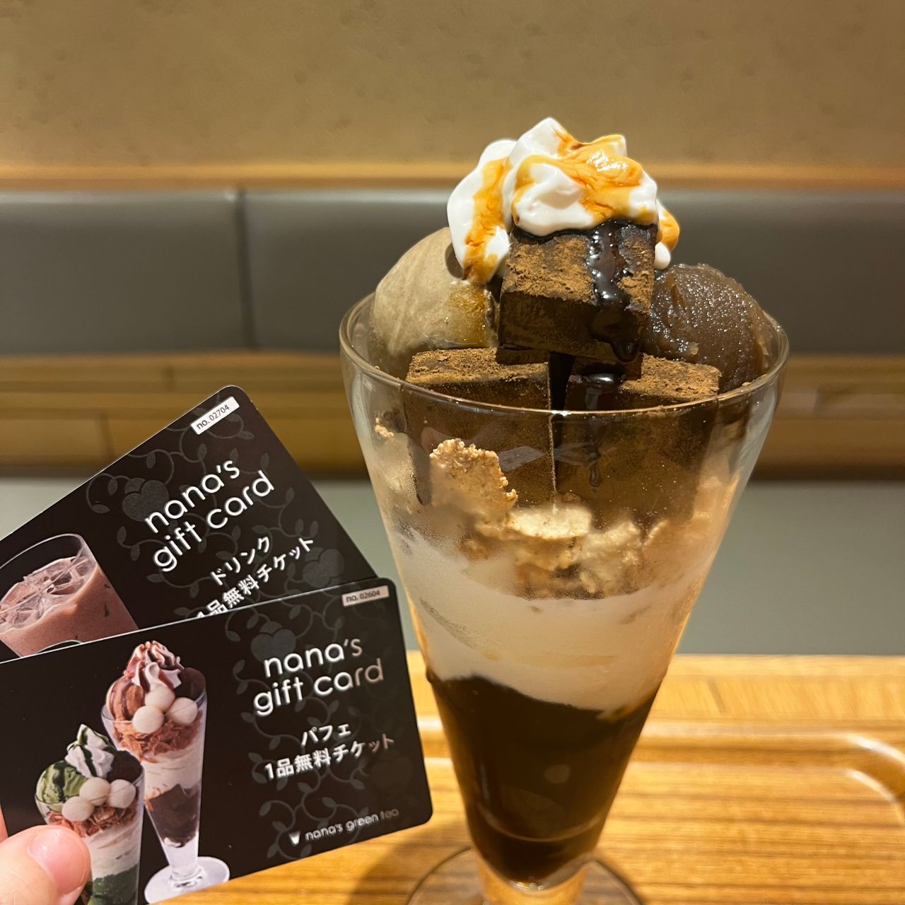 パフェ:抹茶生チョコレートパフェとほうじ茶生チョコレートパフェ