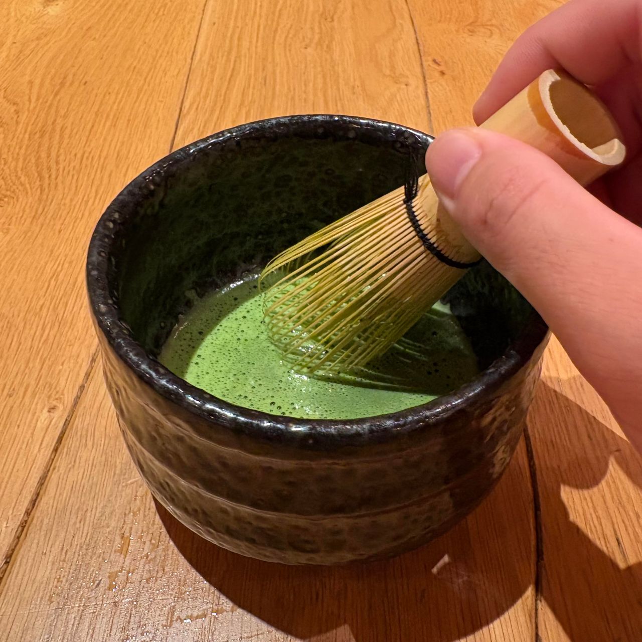 新人の頃はきめ細やかに点てるのにとても苦労しました...