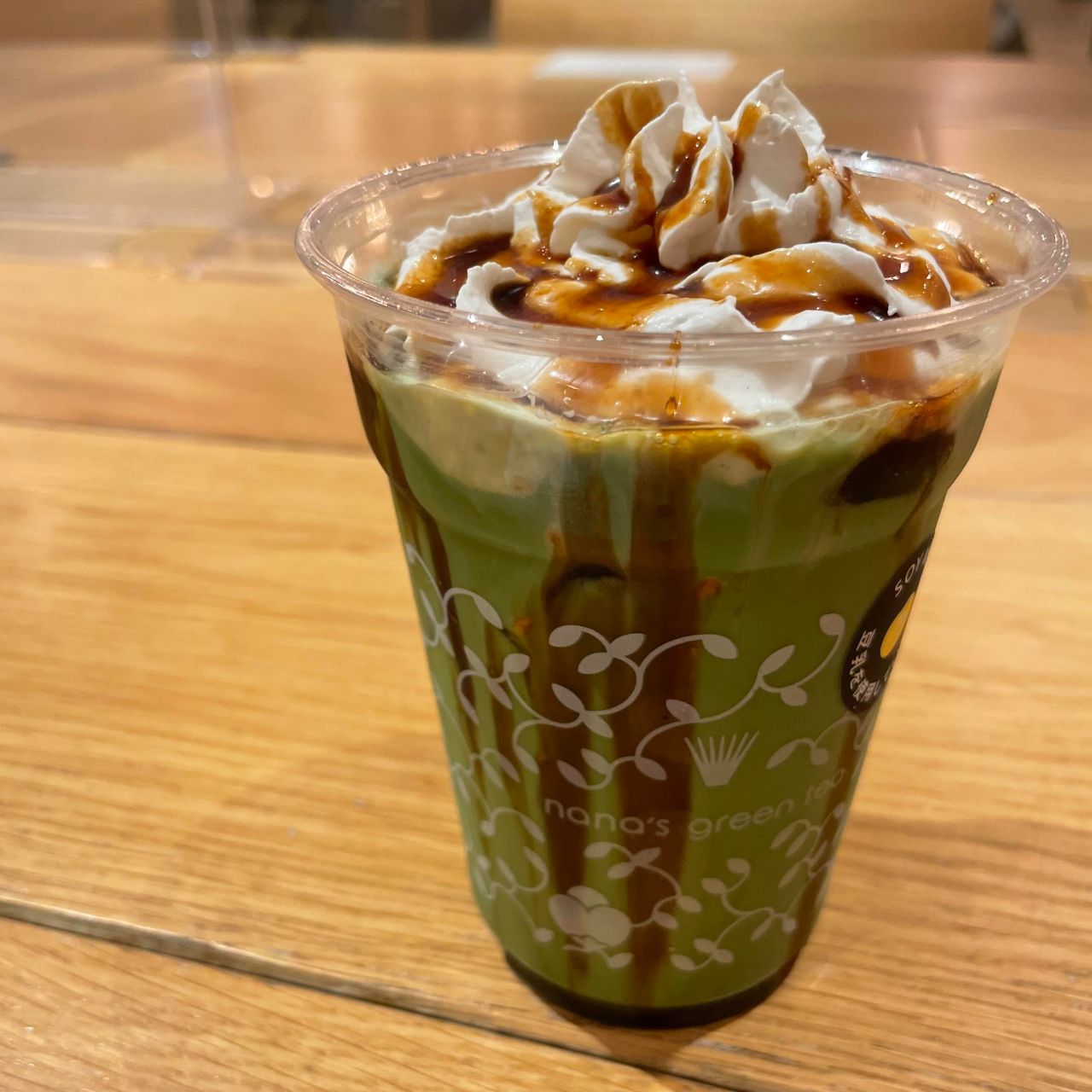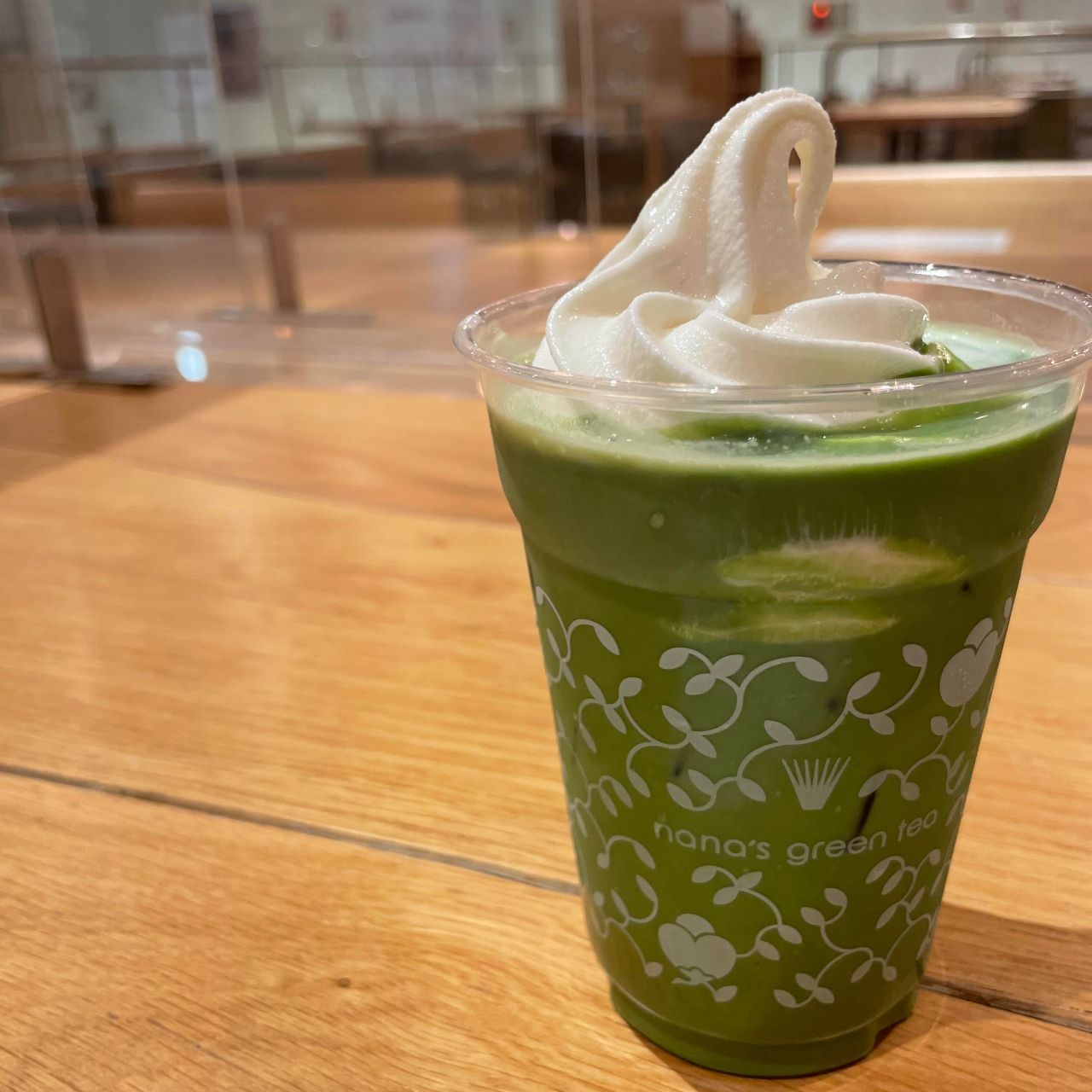 グランドメニューには玄米抹茶ソフトクリームラテと黒胡麻ソフトクリームラテという商品がありますが、抹茶ラテでもソフトクリームをトッピングすることで、抹茶ソフトクリームラテにすることができます。