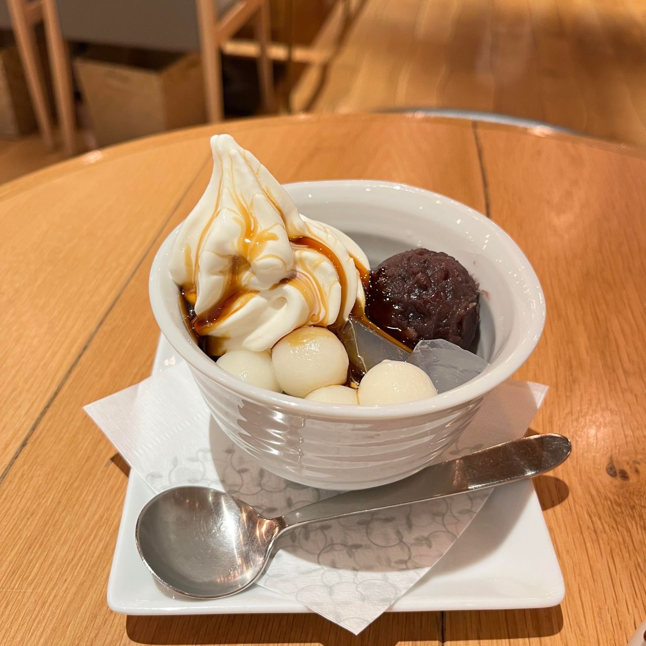 歯切れの良い寒天ともちもちした白玉、ほくほくとした甘味が感じられる粒あん、そして冷たくてなめらかなミルクソフトクリーム。さらに黒蜜のコクのある甘さ。色んな味と食感を一度に楽しめます。