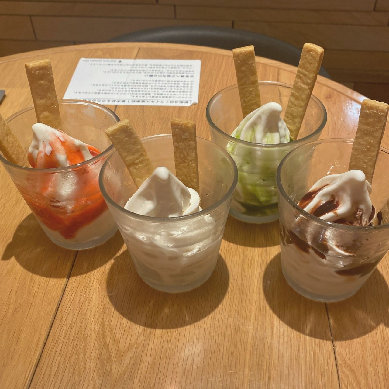 シンプルなミルクソフトに加え、抹茶やチョコレート、