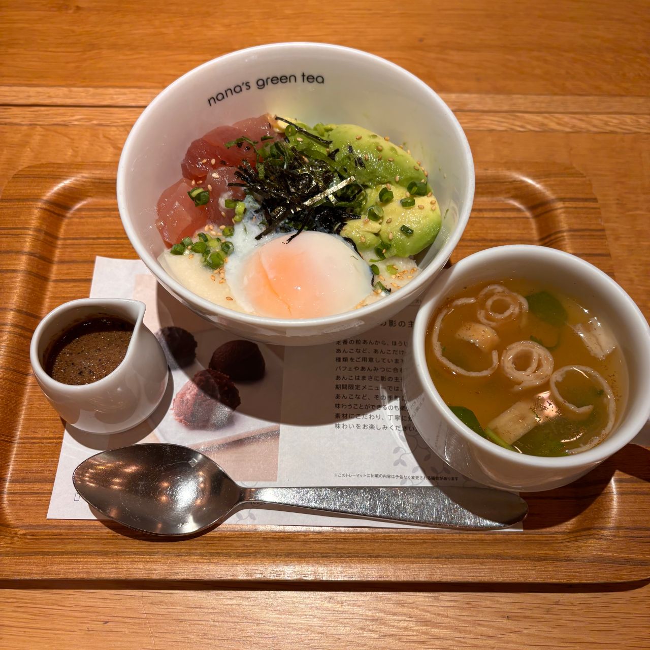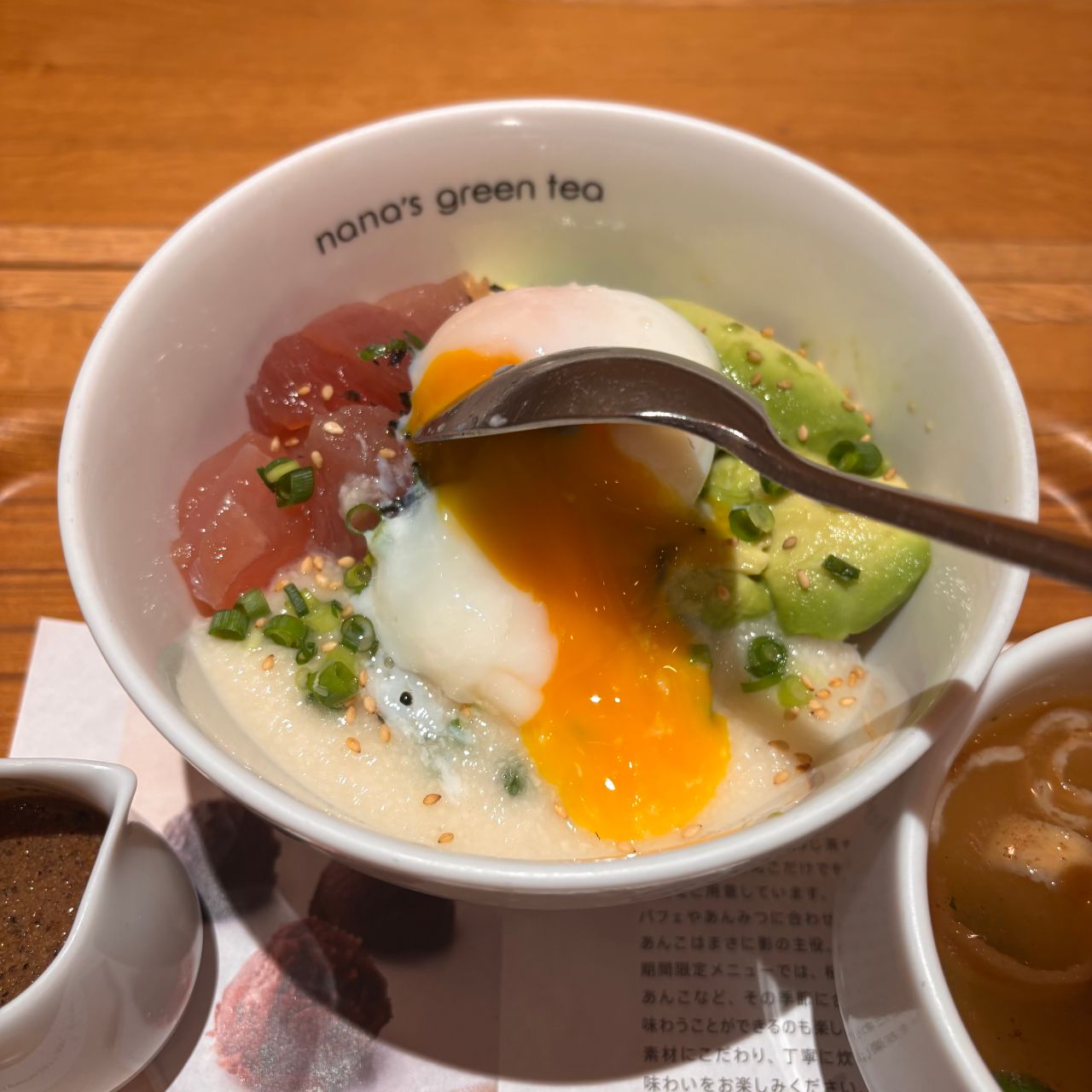 「アボカドと鮪のとろろどんぶり」に「温玉」をトッピングすることで