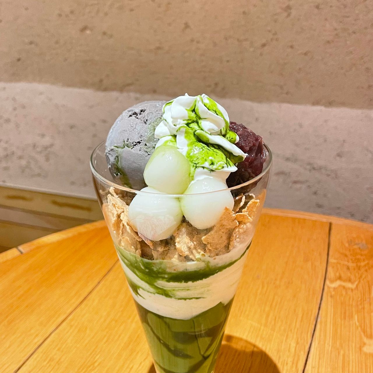 ナナズグリーンティーの人気メニュー、抹茶白玉パフェです。